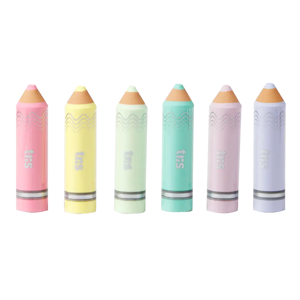 A borracha Lápis tem formato divertido de lápis coloridos. É atóxica liv re de PVC e tem textura super macia!
