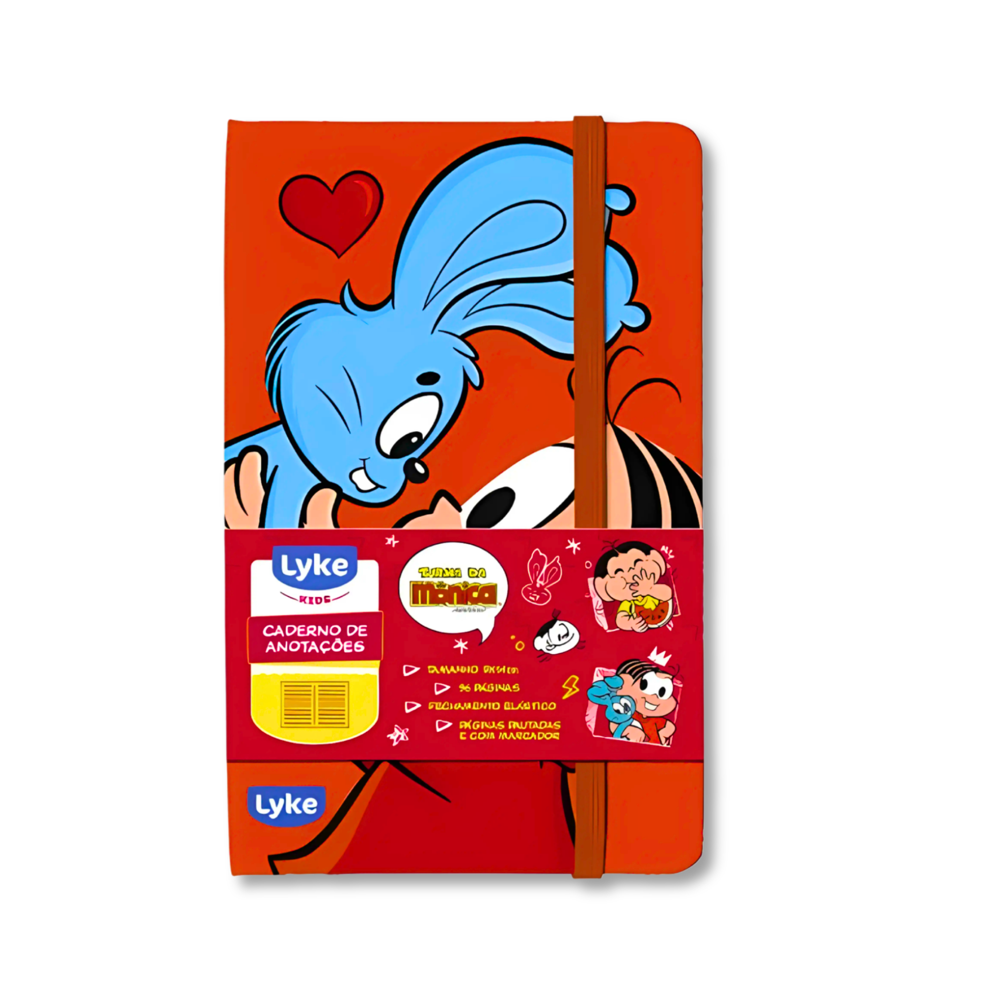 Bloco de anotações LYKE da Turma da Mônica, com páginas pautadas. Possui uma capa resistente e macia com cantos arredondados e é ideal para anotações rápidas.