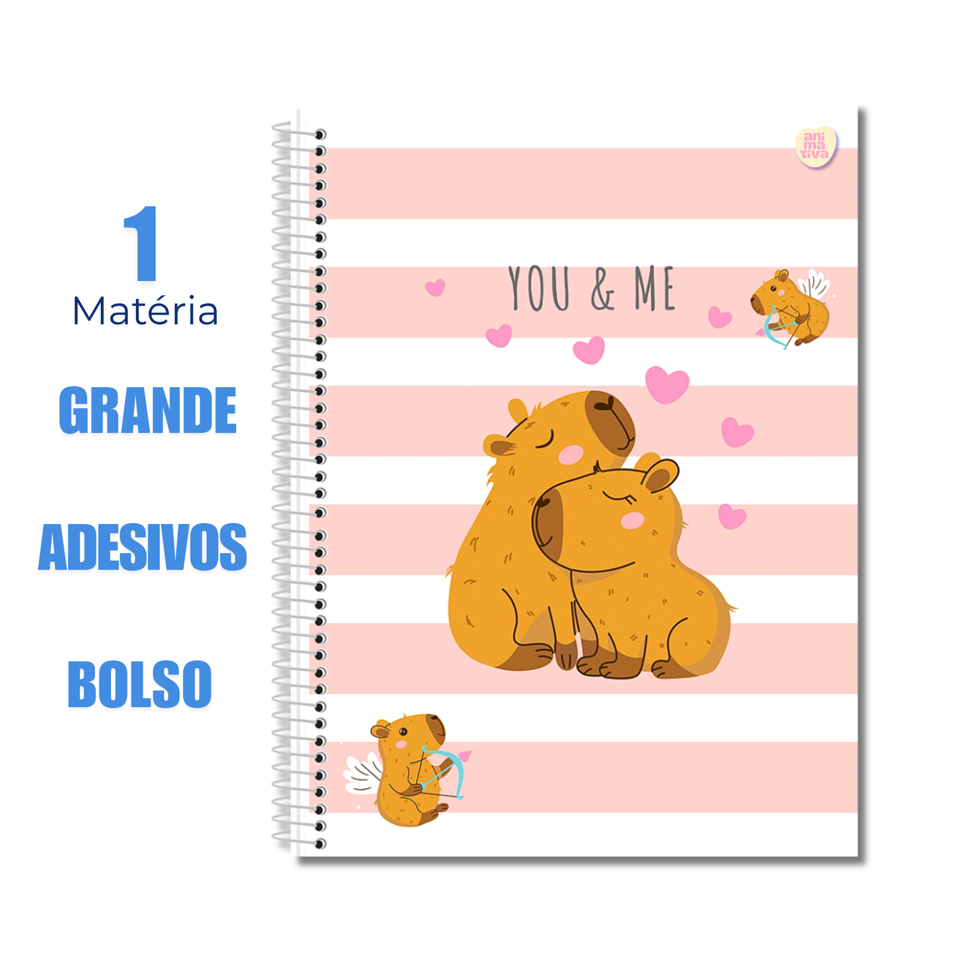 Caderno Universitário 1 Matéria 80 Folhas CapyCuties You Me