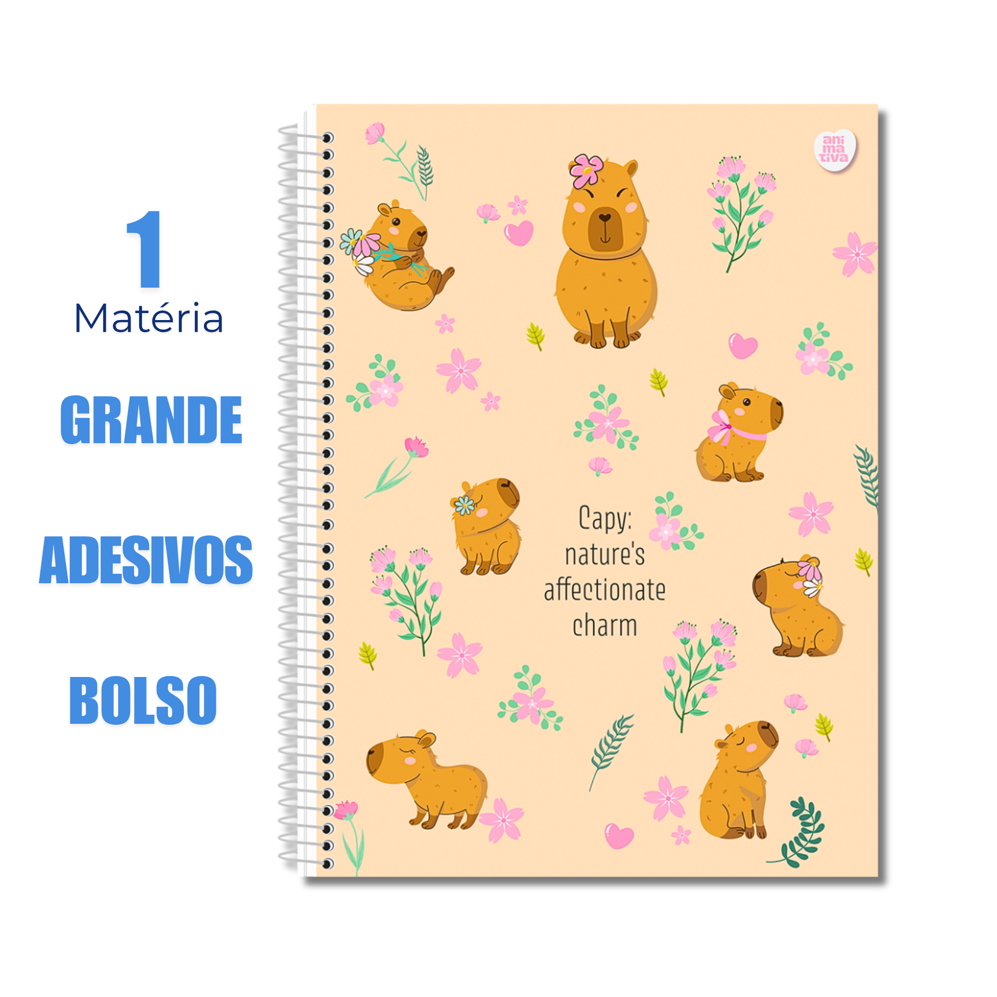 Caderno Universitário 1 Matéria 80 Folhas CapyCuties Capy Natures