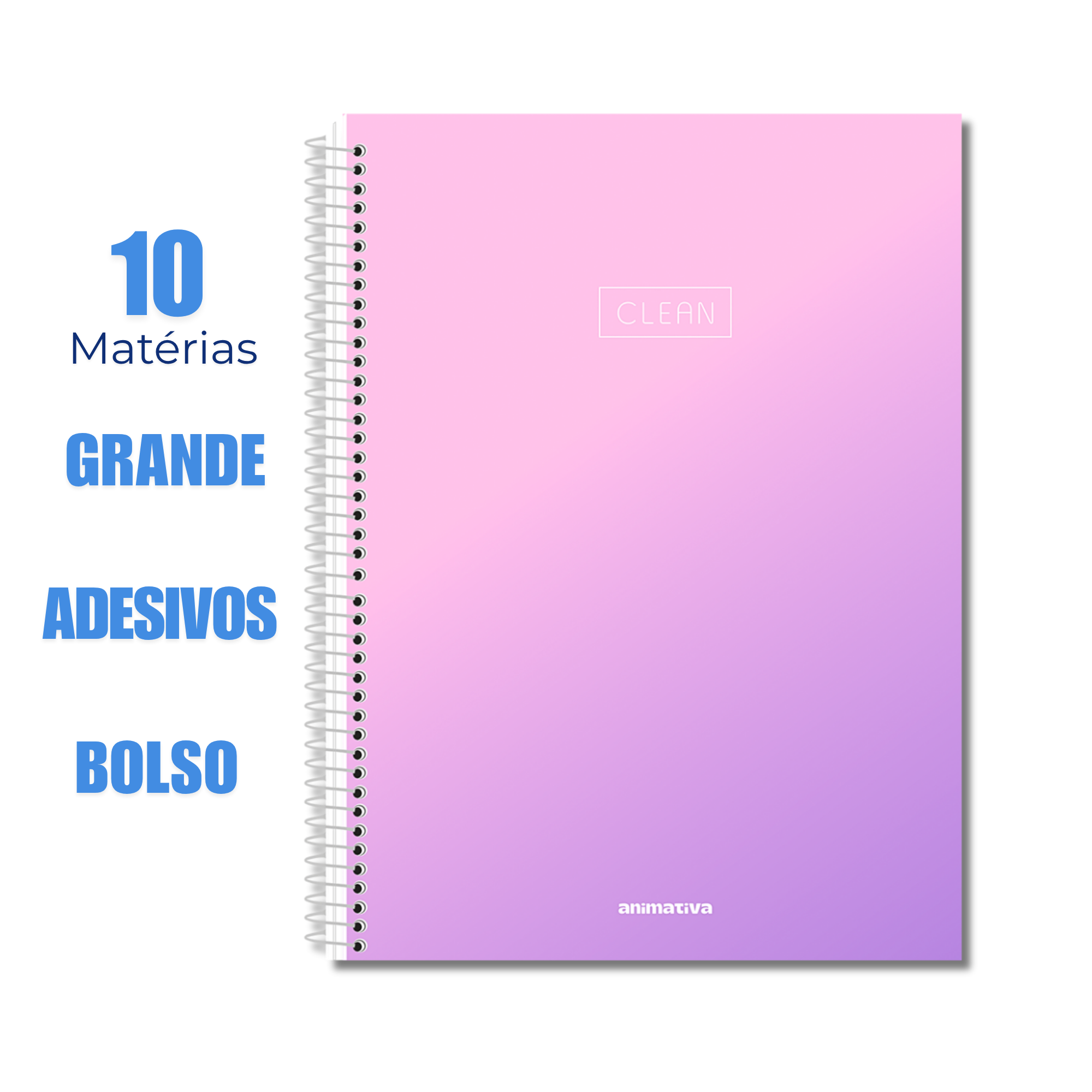 Caderno 10 Matérias com bolso para documentos personalizado, linda cartela de adesivos, Ficha de dados personalizada e espaço para anotações.
