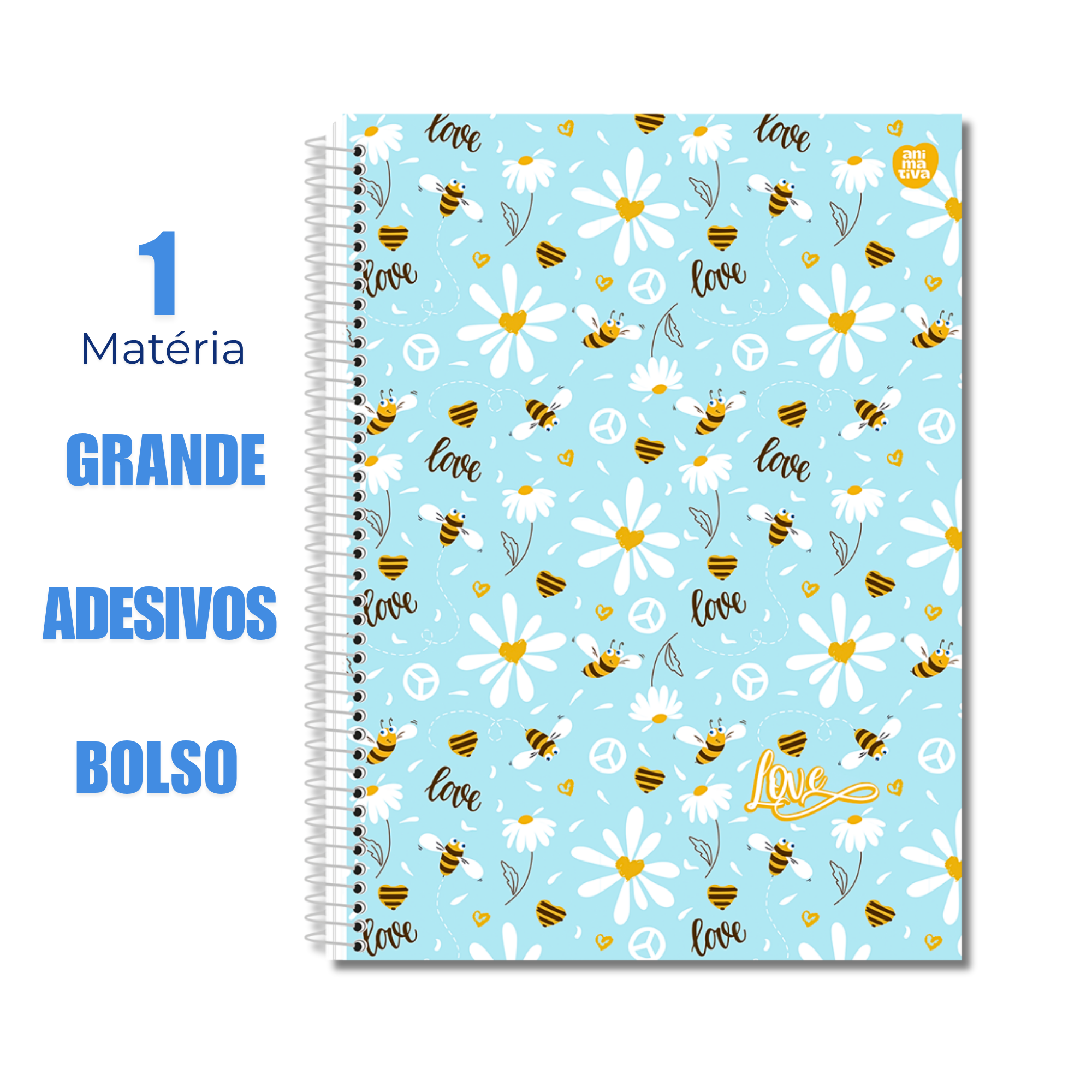 Caderno Universtário 1 Matéria Love Azul Abelha