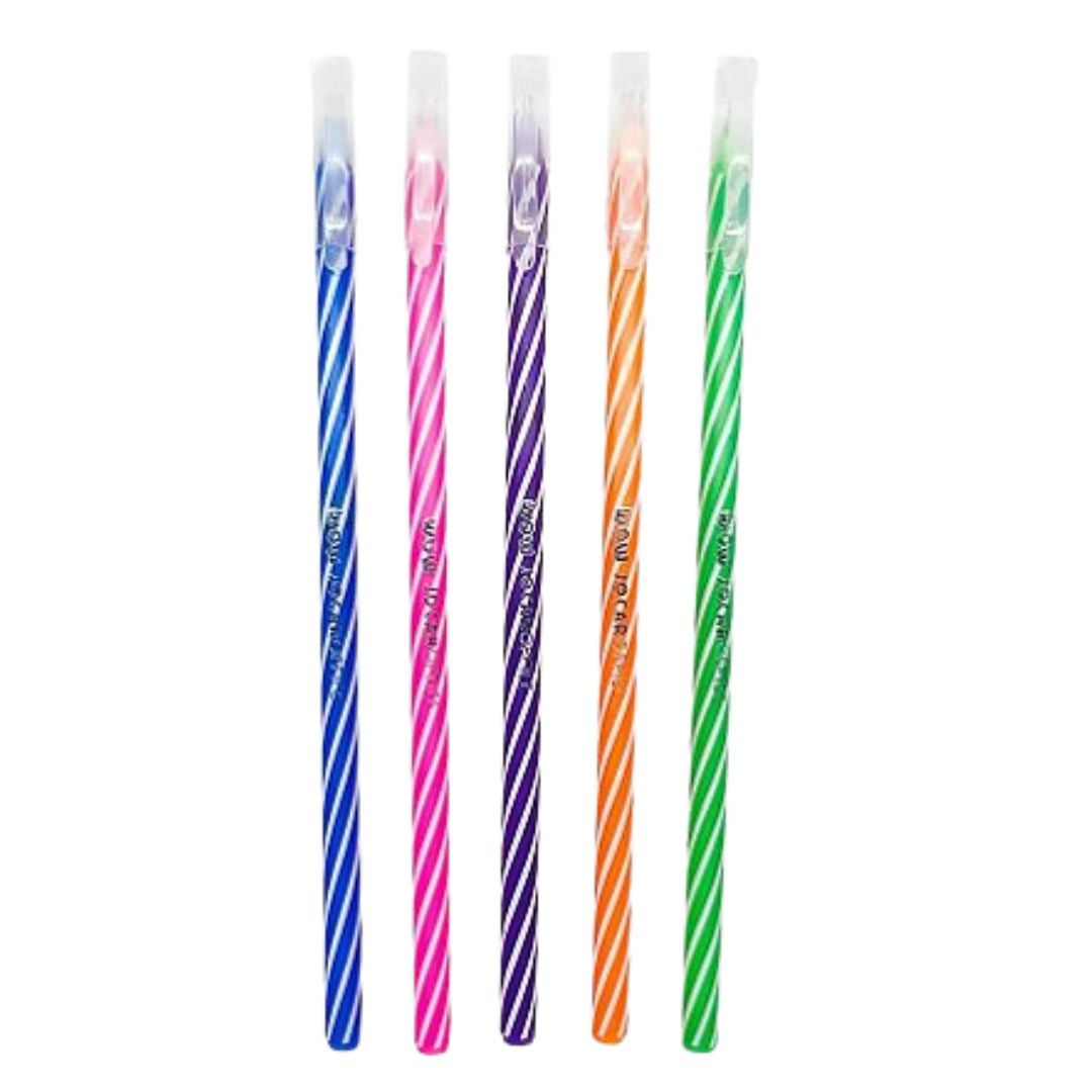 Possui tampa com clip, o que faz com ela possa ser presa em cadernos, blocos e agendas, e a sua tinta é colorida, seu corpo é em espiral e possuem detalhes na cor das tintas.