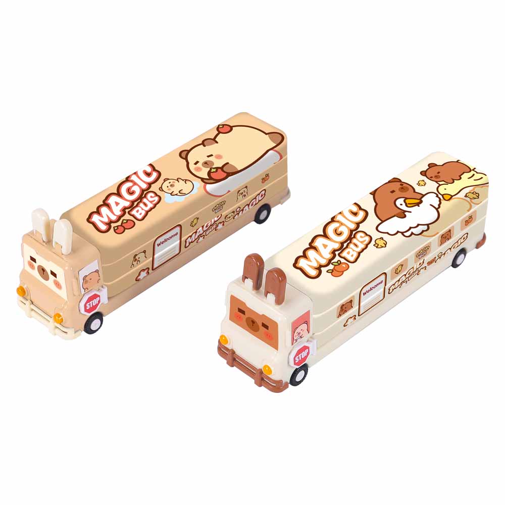 Estojo Metalico Box Ônibus Capivara Grande 3D Com Divisórias Capibara