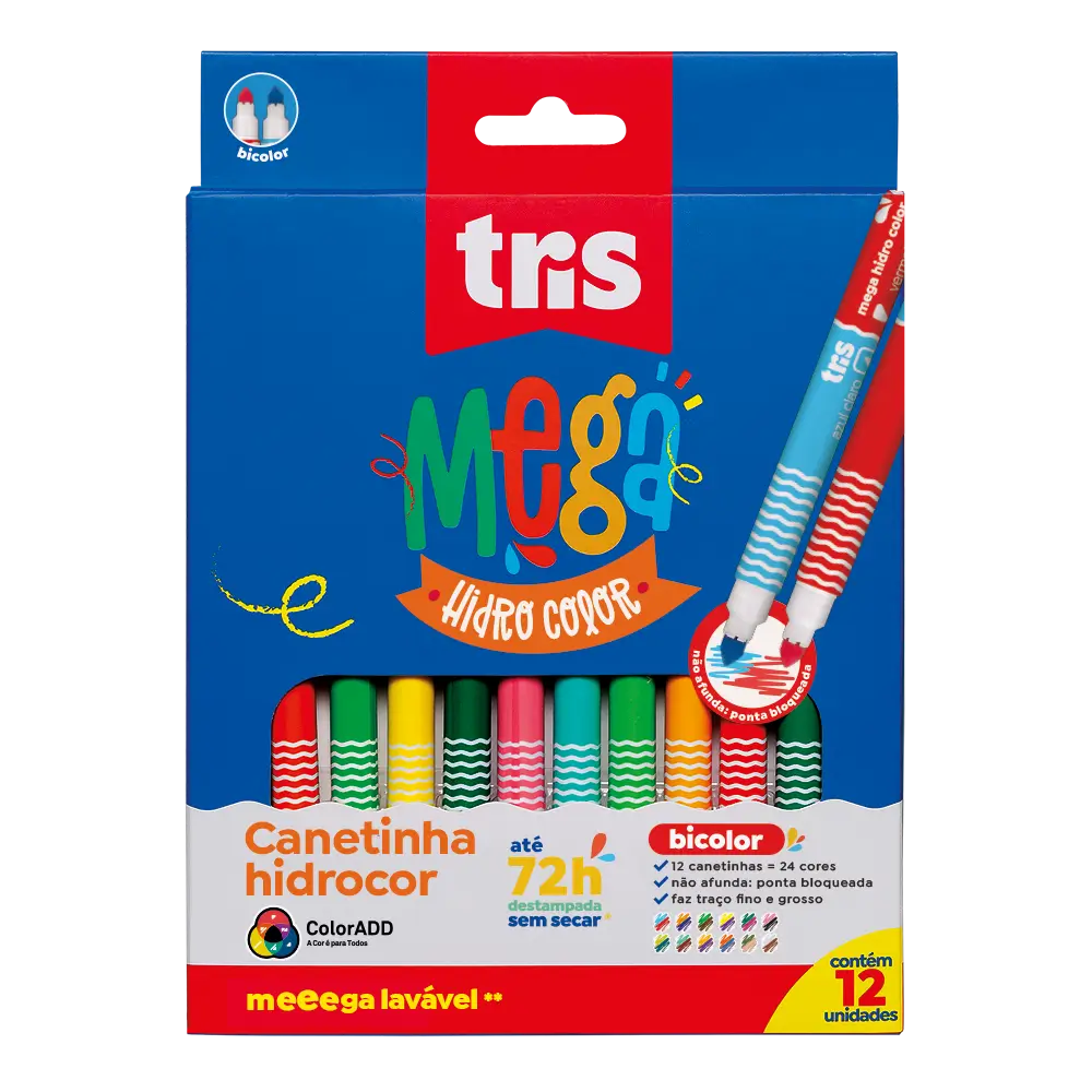 Cores ultra intensas! Fica até 72h destampada sem secar. Possui traço fi no e grosso: ideal para handlettering! Tinta super lavável. É ponta dupla: 24 cores em 12 canetas!