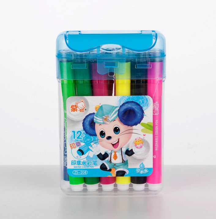 Ela Possuí 12 canetinhas hidocor com Carimbo na tampa.